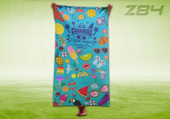 Nuestra marca canaria Z84 confecciona estas toallas desde 0. Partiendo de una tela blanca es capaz de hacer el diseño que quiera. Para ponértelo más fácil ofrece diferentes diseños estándar. Al ser de fabricación propia, puedes añadirle tu nombre en el momento de hacer la compra y la fabricaremos ya personalizada, así nunca tendrás problemas de desgaste de color o caída de letras.